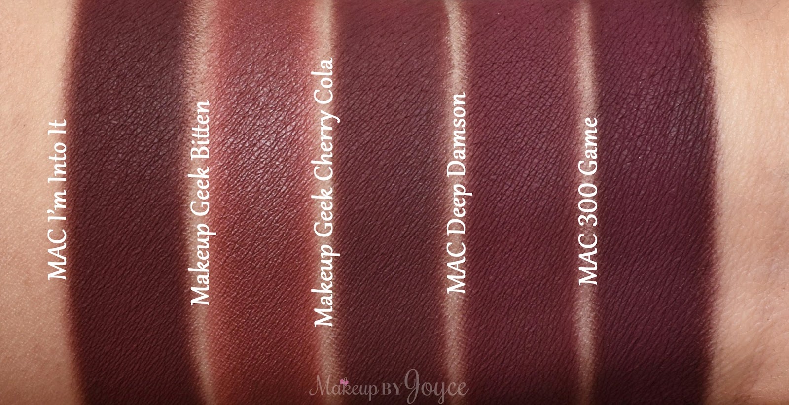 Trending Makeup Geek Bitten Bitten is described as a matte deep maroon red. Makeup Geek Bitten - Makeup geek describes is as: