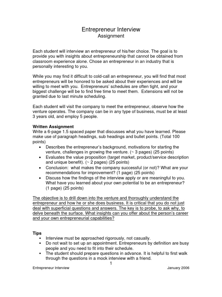 Entrepreneur Interview Assignment Entrepreneurship Cognition - A glassdoor study of tens of thousands of interviews found the 50 questions you're most likely to be asked in your next interview